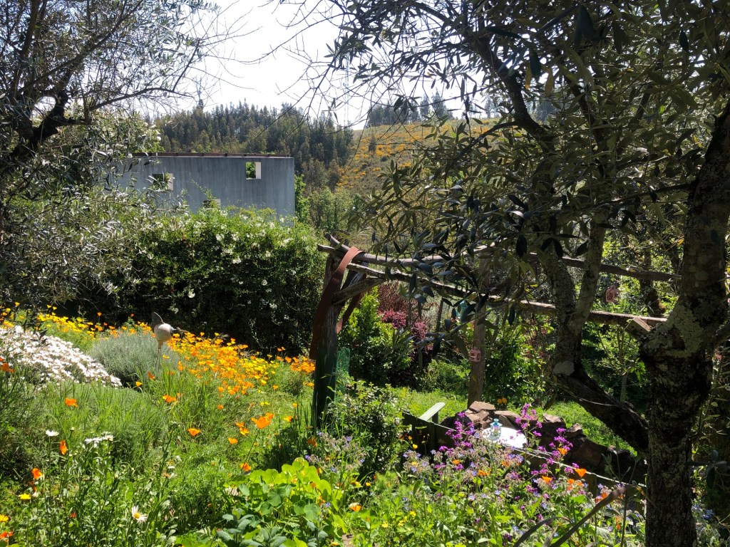 The flowery garden has a large variety of trees of which you can pick your own fresh fruit; oranges, lemon, lime, quince, satsuma, olive, persimmon, apple, almond and pear. There also are diverse terraces where you can relax relative private. The bottom part of the garden has several beds for vegetables and fruit, surrounds made with recycled roof tiles.
